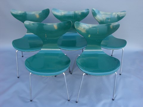 Solgt"Mågen" af Arne Jacobsen stole - 5 stk, model 3108. Lavet hos Fritz Hansen i 1978. Stolene er med forkromet stel.5000m2 udstilling.