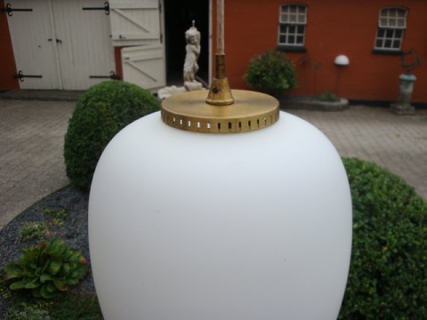 Kinapendel af Bent Karlby. Opalglas og med messing i bund & top. Måler 39 cm i højden og Ø98.5cm