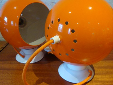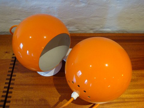 2 orange kugle/ Ball væglamper i retrostil. Lamperne er i perfekt stand og med orange stofledning.