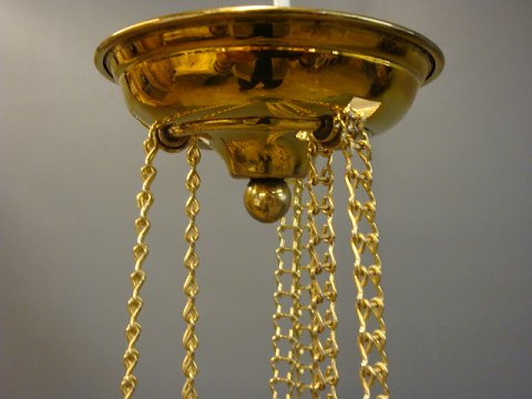 Antique hanging lamp with green glass from the year 1860 and is in good condition.