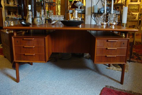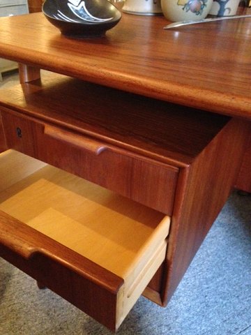 SolgtFlot ny istandsat skrivebord tegnet af Omann Junior. Bordet er i teak og fremstår i perfekt stand.