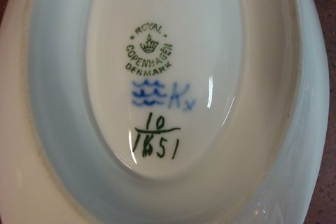 SolgtKgl. blå blomst svejfet. Sovseskål i perfekt stand. nr. 10/1651.