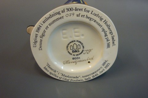 Figuren forestiller Olaf Poulsen i rollen som Henrik i komedien Maskerade, opført på Det kongelige Teater 1884-85. Holberg-samlingen er fremstillet i anledningen af 300-året for Ludvig Holbergs fødsel i 1684.