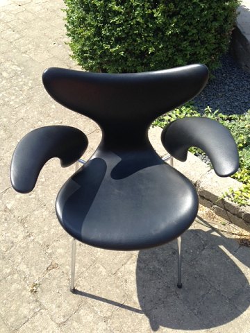 SolgtStolen er model 3108 designet af Arne Jacobsen. Stolen er kaldet Mågen eller liljen efter den i 1970 blev lavet med armlæn. Stolen er produceret af Fritz Hansen i sort læder. 2 stk. på lager i flot stand.