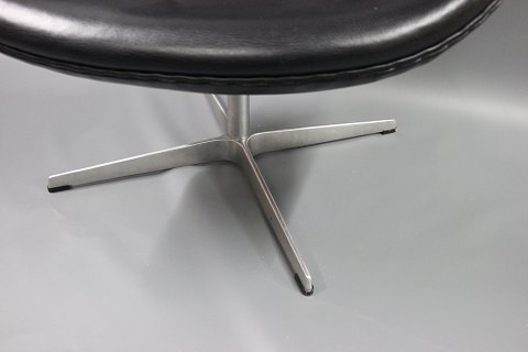 SoldRecliner model 3320 Swan chair designed by Arne Jacobsen with original black leather and plain turn has a great patina.