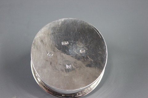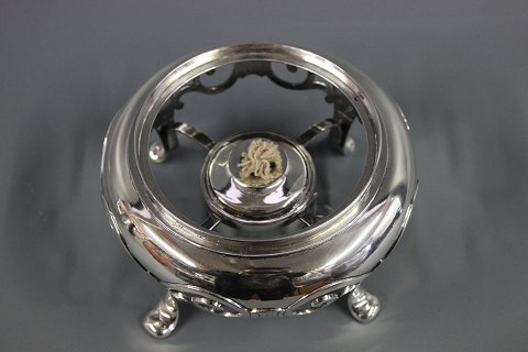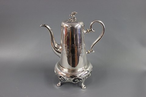 SolgtUnika sølv kaffekande med tilhørende fyrfad designet af Anton Michelsen i 1854 stempelt med tretårne og A:M. Vægt Total : 1325g højde 31 cm kanden alene måler 23 cm.