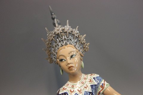 SolgtOrientalsk figur af Dahl Jensen, nr 1125. Siamesisk tempeldanserinde. Højde 28 cm.