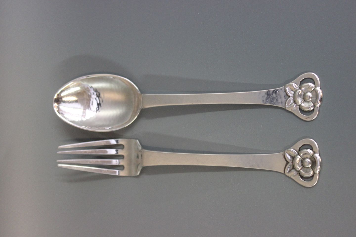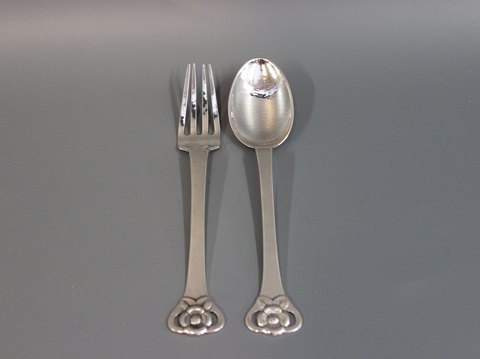 SolgtEvald Nielsen barnebestik, ske og gaffel nr. 9, i 830 sølv, fra 1924.