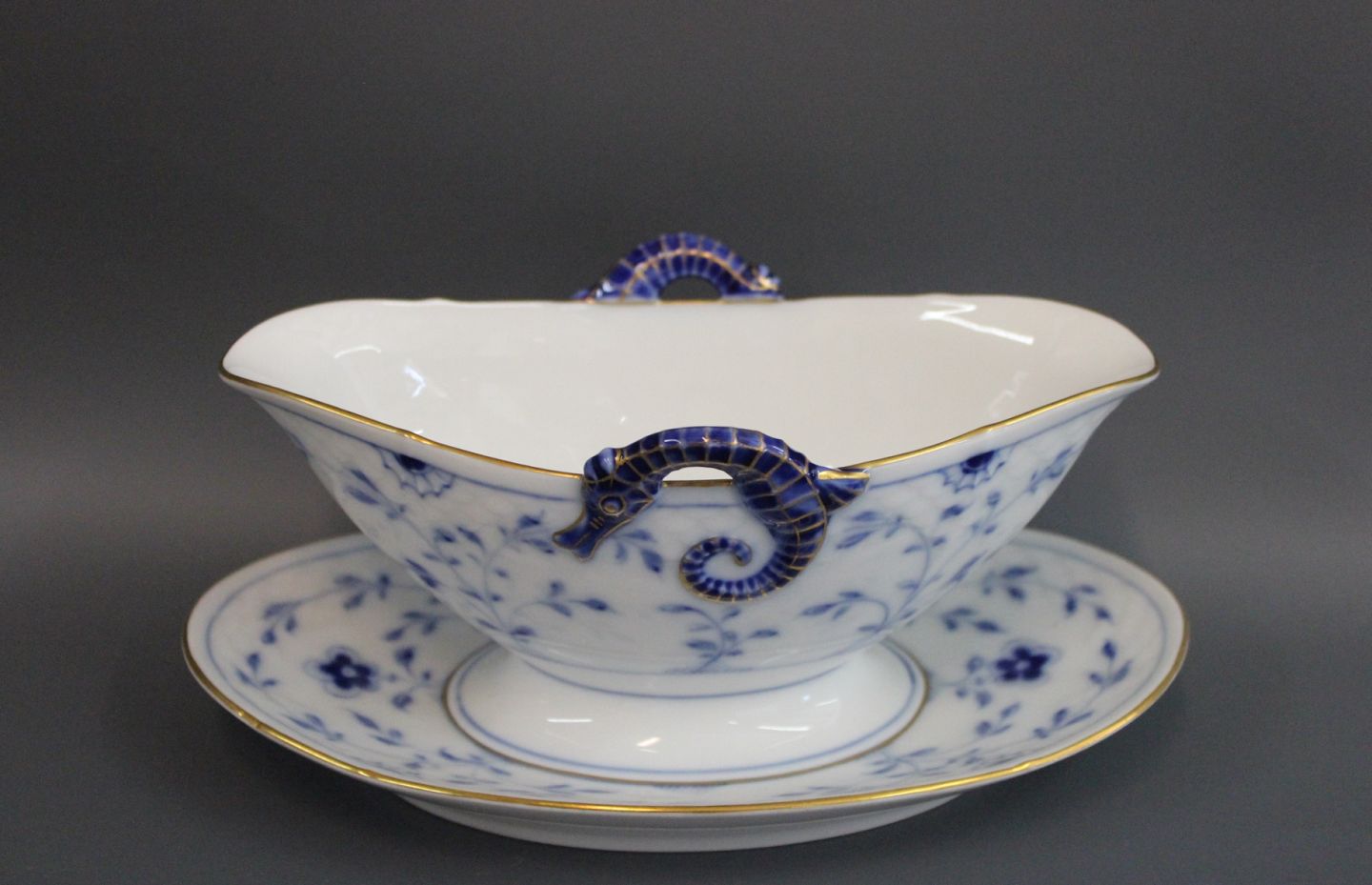SolgtB&G porcelæn sommerfugl. Sovsekande på fast fod med guldkant. Lavet mellem 1948 og 1952.