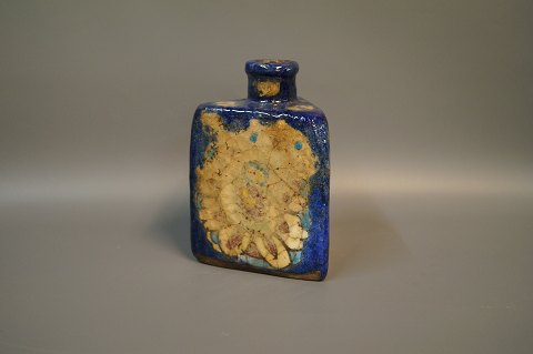SolgtTrekantet keramik vase med blomstermotiv fra 1940erne af ukendt keramiker.
