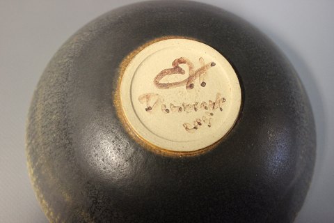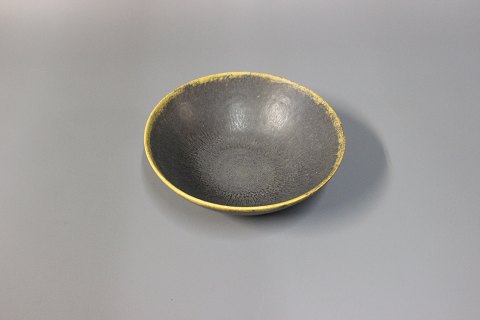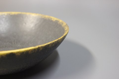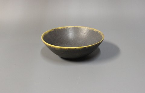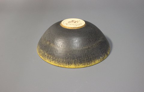 SoldBrown stoneware bowl with a yellow edge signed Eigil Henriksen, Denmark.