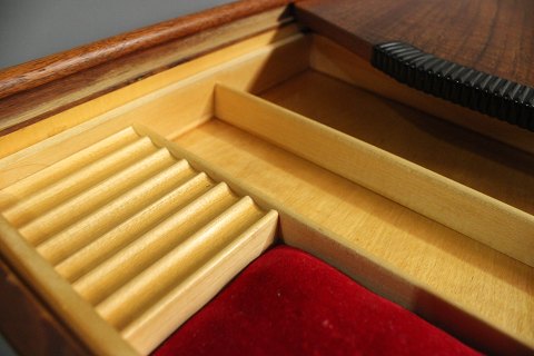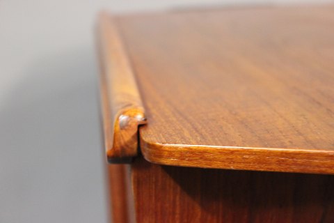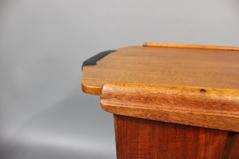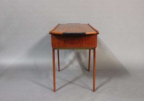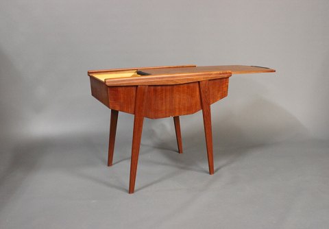 Sewing table in teak with sliding top plate and compartment beneath by a danish furniture manufacturer from around the 1960s.