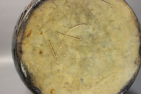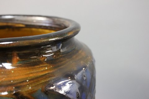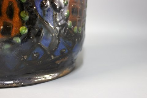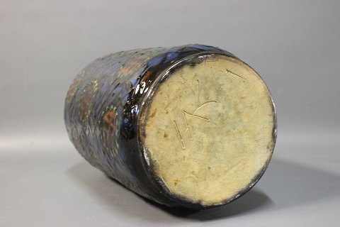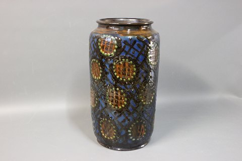 SolgtStor Keramik gulvvase i flotte mørke farver af Herman A. Kähler. Vasen er fra 1930erne.