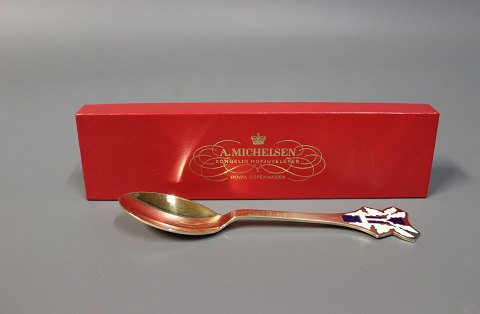 Christmas spoon by A. Michelsen from 1991, gilded sterling silver 925 s. The spoon is with the motif "Northern lights" and designed by Lin Utzon.
