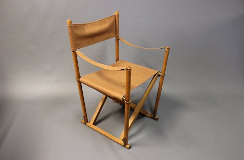 SolgtTre klapstole, model MK99200, designet af Mogens Koch i 1932 og produceret af Interna Danmark i 1960erne. Stolene er i poleret bøg, med messing ringe og patineret læder sæder.
