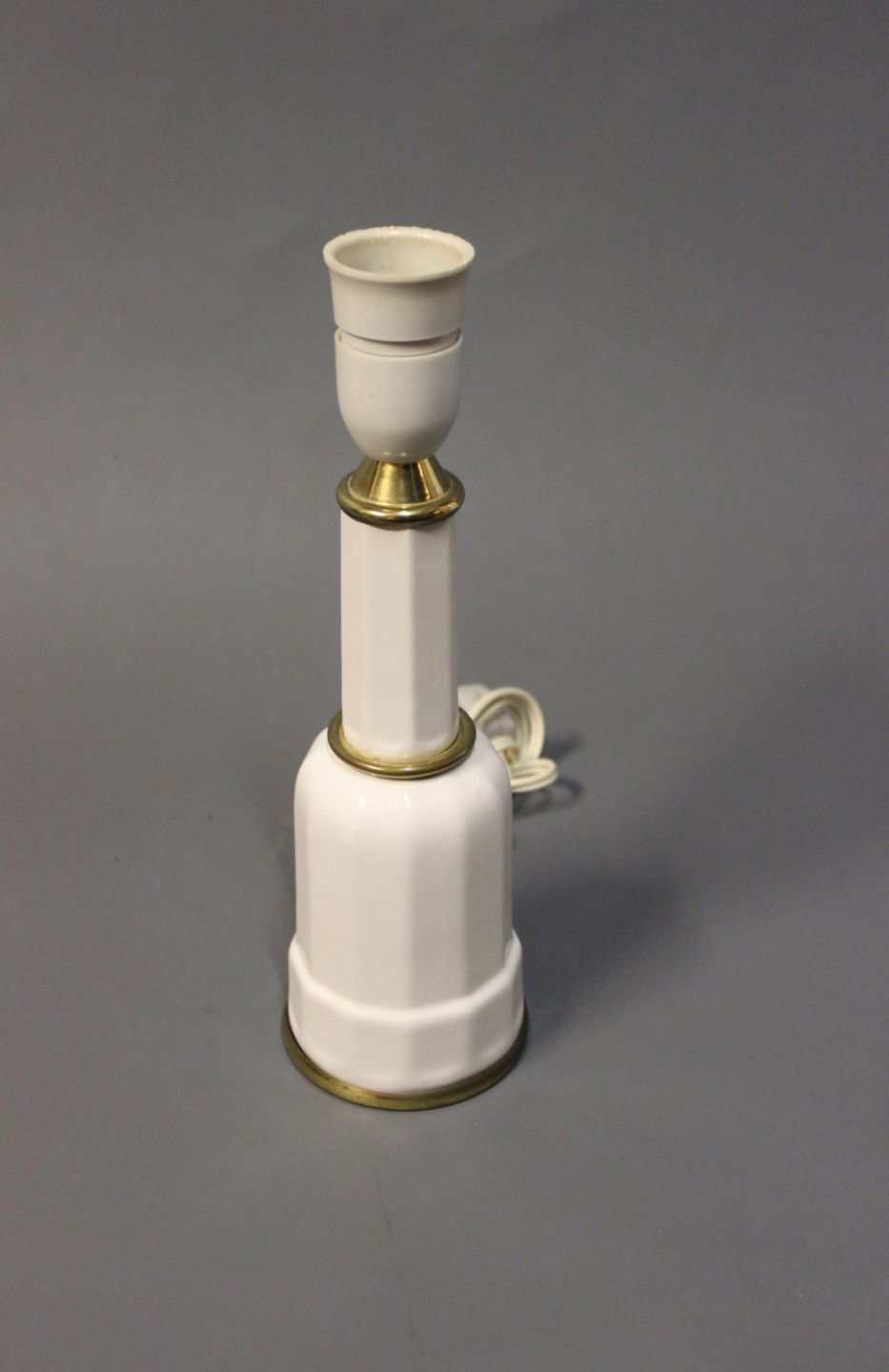 SoldSmall White ceramic tablelamp with brass edge from Heiberg.