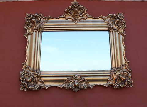 SoldBeautifully decorated mirror with frame of original gold leaf from Denmark in 1820.