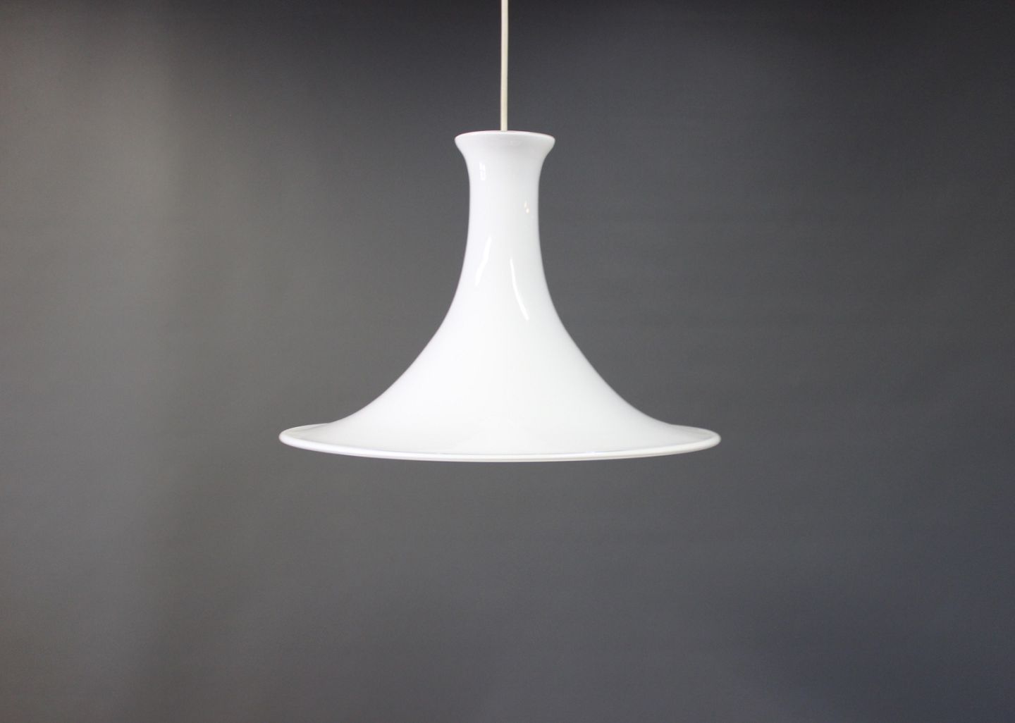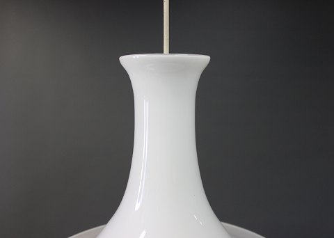 Holmegaard "Mandarin" pendant designed by Michael Bang. In opaline White mouth blown glass. Dia - 43 cm.