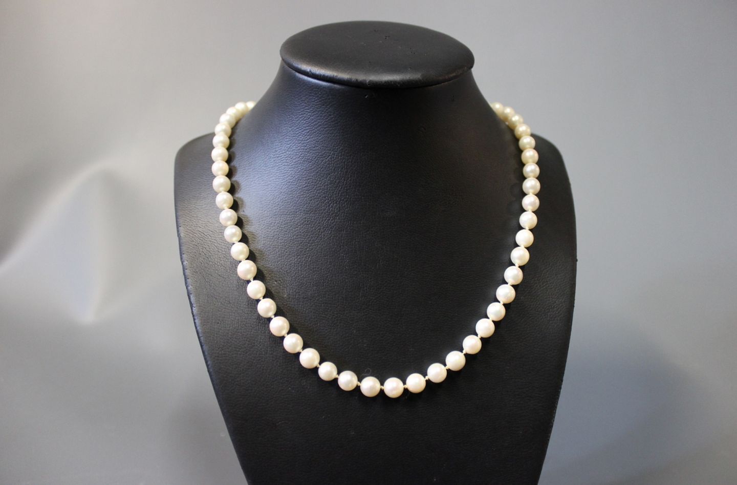 SolgtKulturperlekæde med 14 kt. guld lås. Kæden er 45 cm lang.