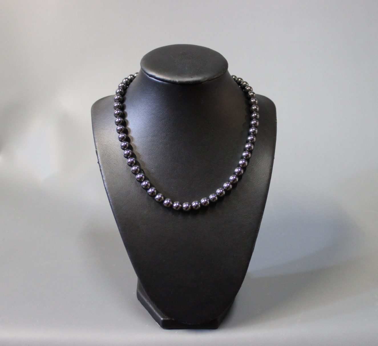 SolgtHæmatitkæde med mørkegrå blodsten. Kæden er 43 cm lang. Sten - 6 mm.