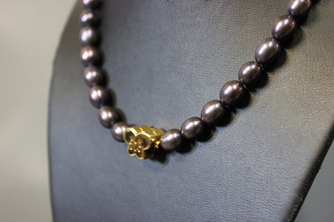 SoldNecklace with fresh water Pearls in purple with gilded Lock. The necklace is 41 cm long.
