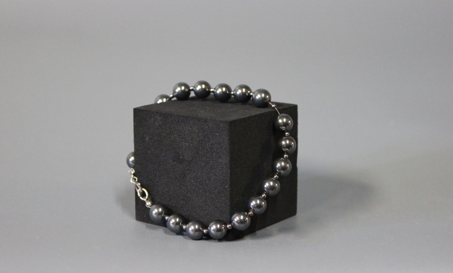 SolgtHæmatit armbånd med mørkegrå blodsten.