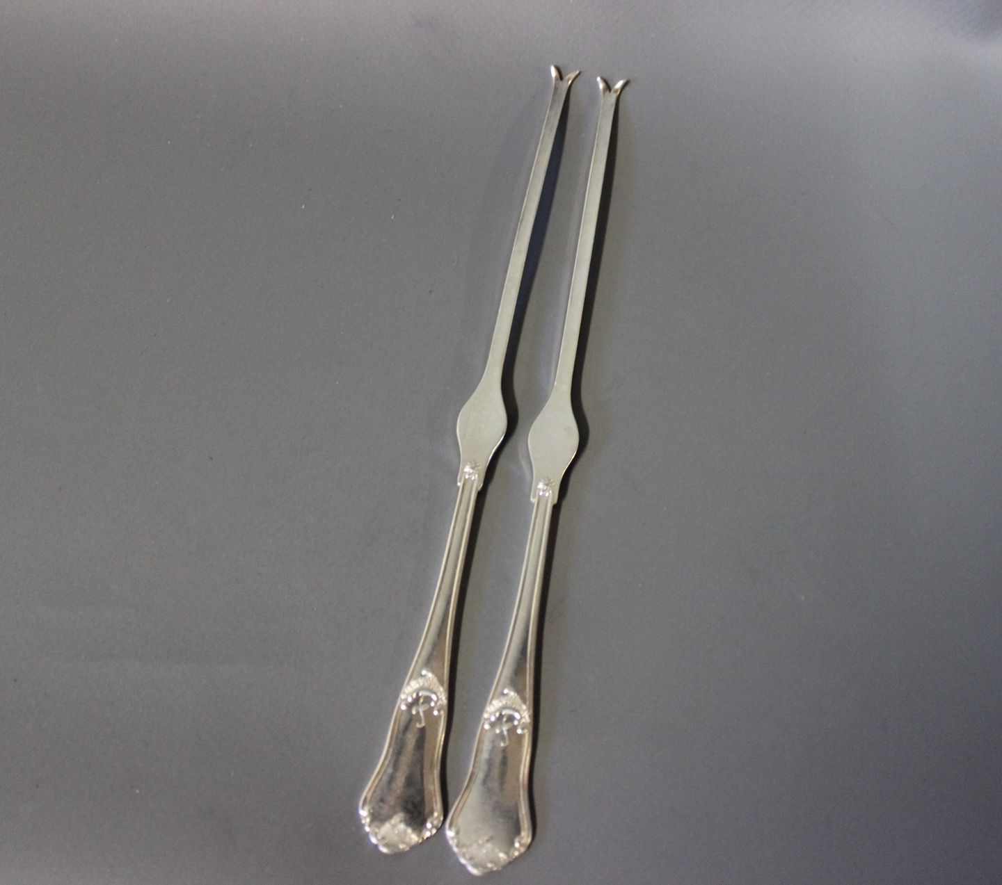SolgtEt sæt af hummergafler i Rosenholm, tretårnet sølv.
