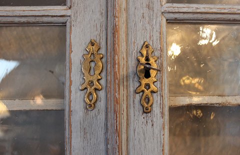 SoldGrey painted glass cabinet in gustavian style from around 1780.