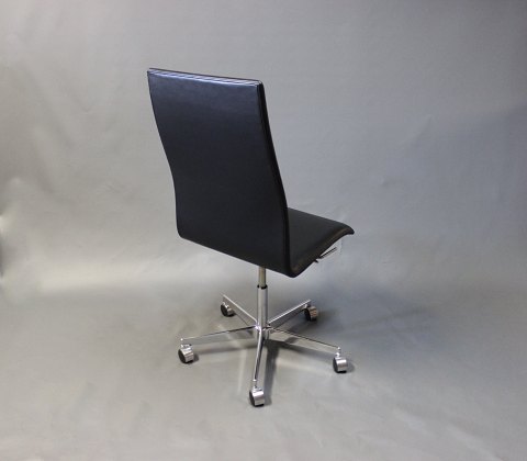 Oxford kontorstol i sort læder af Arne Jacobsen og Fritz Hansen.