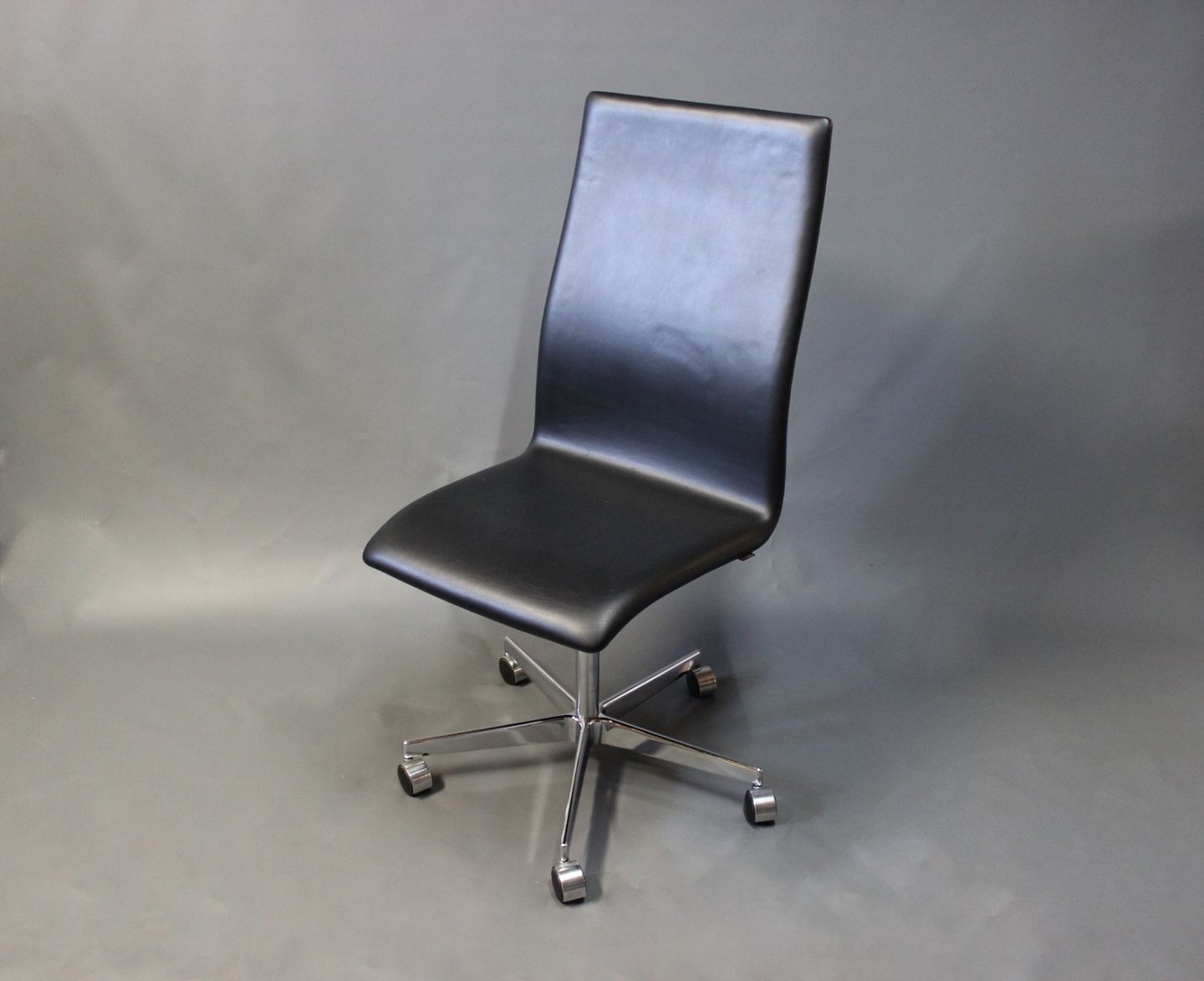 Oxford kontorstol i sort læder designet af Arne Jacobsen i 1963 og produceret af Fritz Hansen. Stolen blev originalt designet til professorerene på St. Catherine's college i Oxford, deraf navnet.