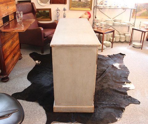 SoldGrocer's disk in grey painted pine Wood from the 1930s. The disk is in good condition and with fillings in the back.