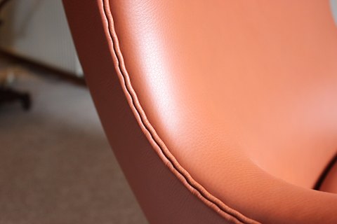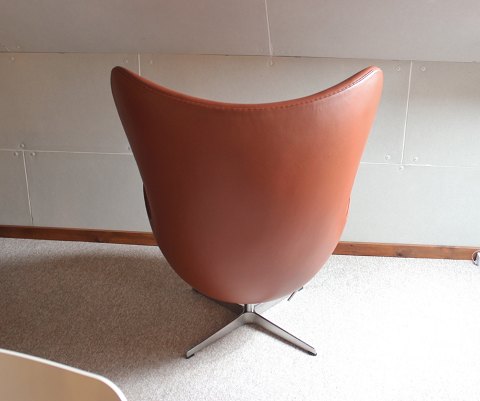 Ægget designet af Arne Jacobsen i 1958 og fremstillet af Fritz Hansen i slut 80erne. Stolen er originalt polstret i cognac farvet klassisk læder. Vi har et æg magen til på lager.