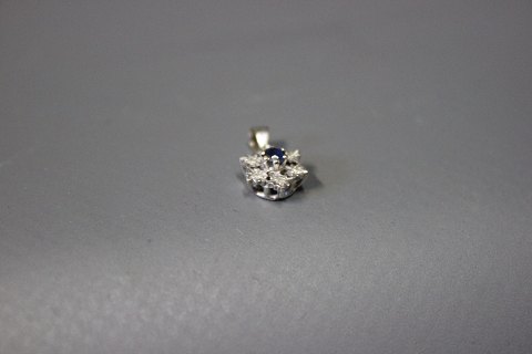 SolgtLille vedhæng i 14 kt. hvidguld med safir og 6 små diamanter.