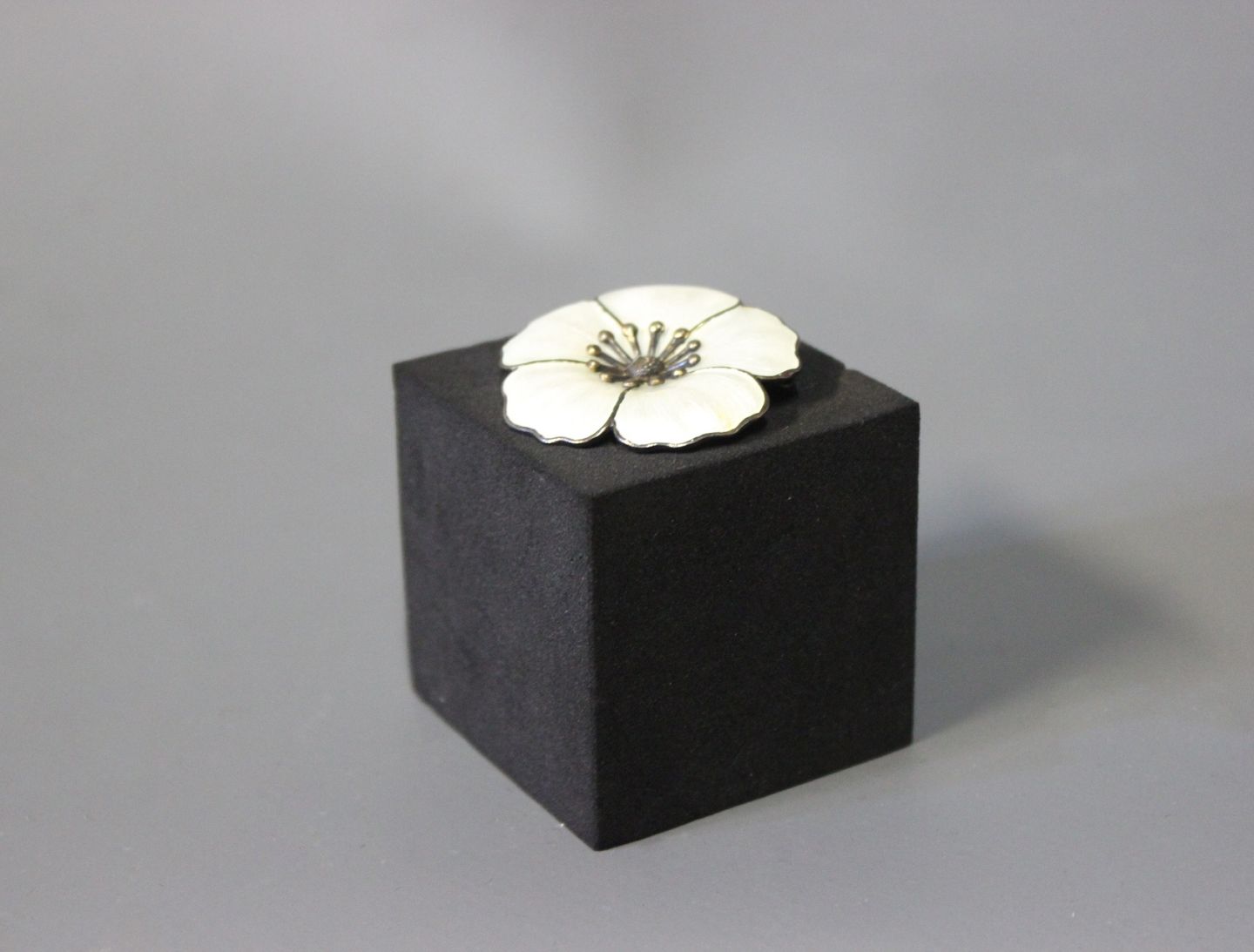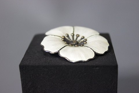 Flower brooch in 925 sterling silver and White enamel, stamped G.H.