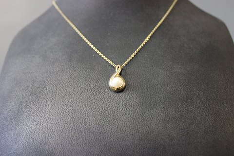 Solgt14 kt. guldkæde og vedhæng med kulturperle.