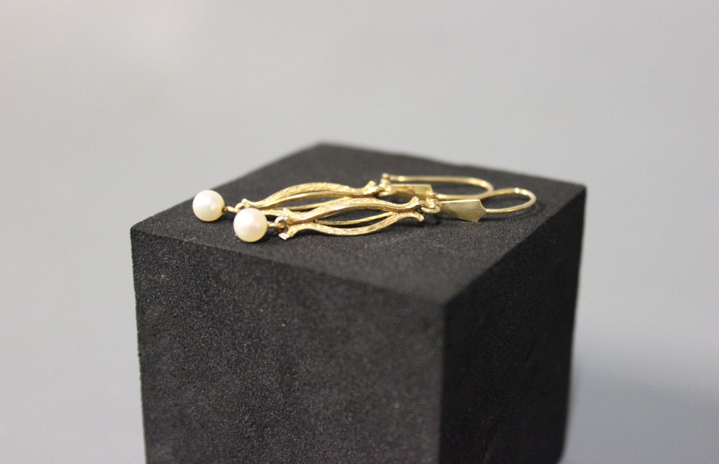 SoldEarrings in 14 ct. gold with small cultured Pearls.