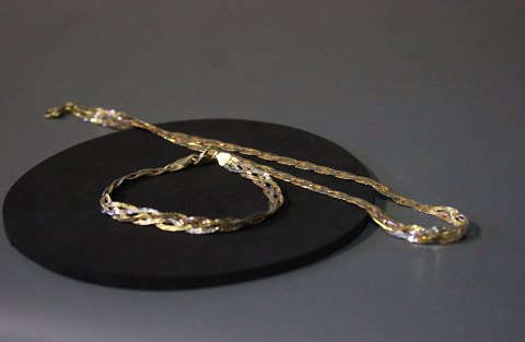 Smukt armbånd i 14 kt. Rødguld, hvidguld og guld.