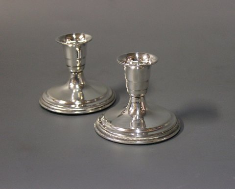 Et sæt lave lysestager i 830 sølv med filt i bunden.