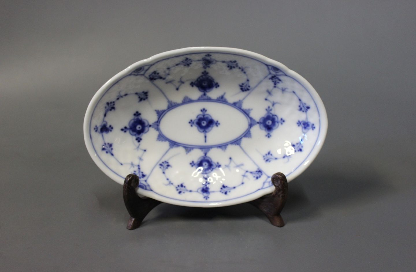 SolgtB&G musselmalet/blåmalet lille ovalt fad, #18.