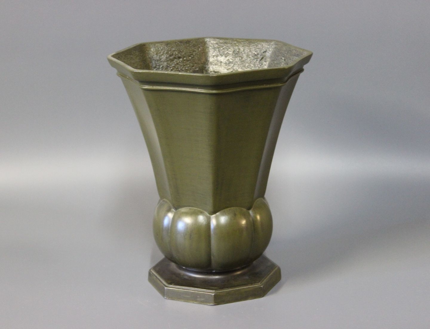 SoldLarge beautiful vase by Just Andersen DK in metal. The vase is in very good condition.