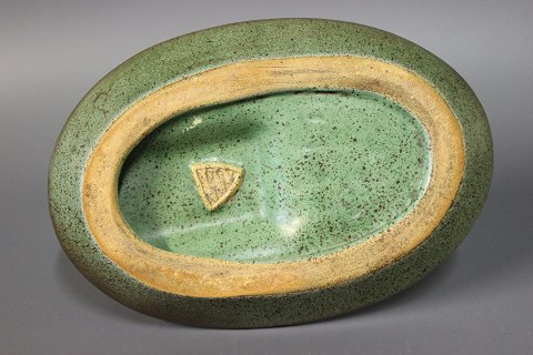 SoldSmall ceramic dish with a dog figurine in Brown and green colors by Michael Andersen & Son.