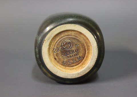 SoldCeramic vase in green colors with the number 295 and designed by Eva Staehr Nielsen for Saxbo.