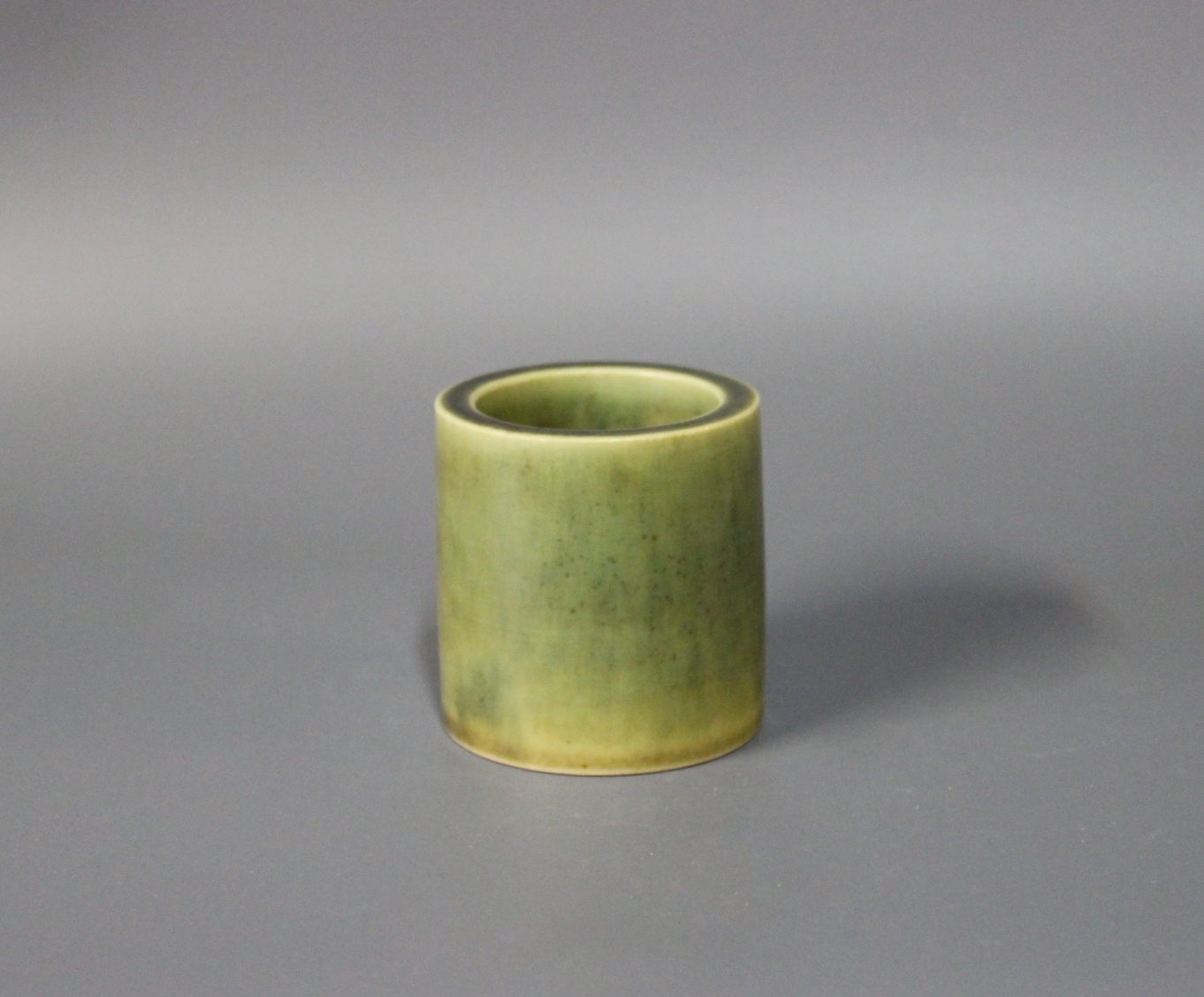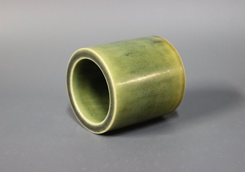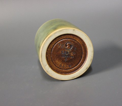 SolgtLille keramik krukke/vase i grønne farver designet af Eva Stæhr Nielsen for Saxbo, nr.: 78.