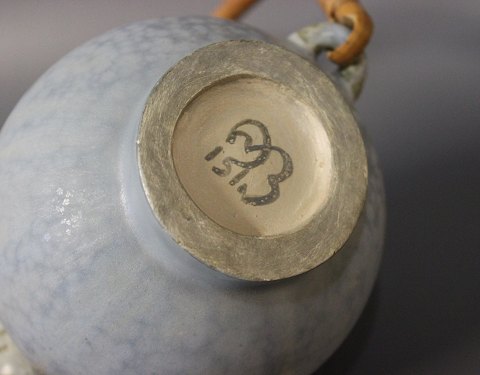 SolgtKeramik kande i lyse farver med flet hank af Arne Bang, nr.: 151.