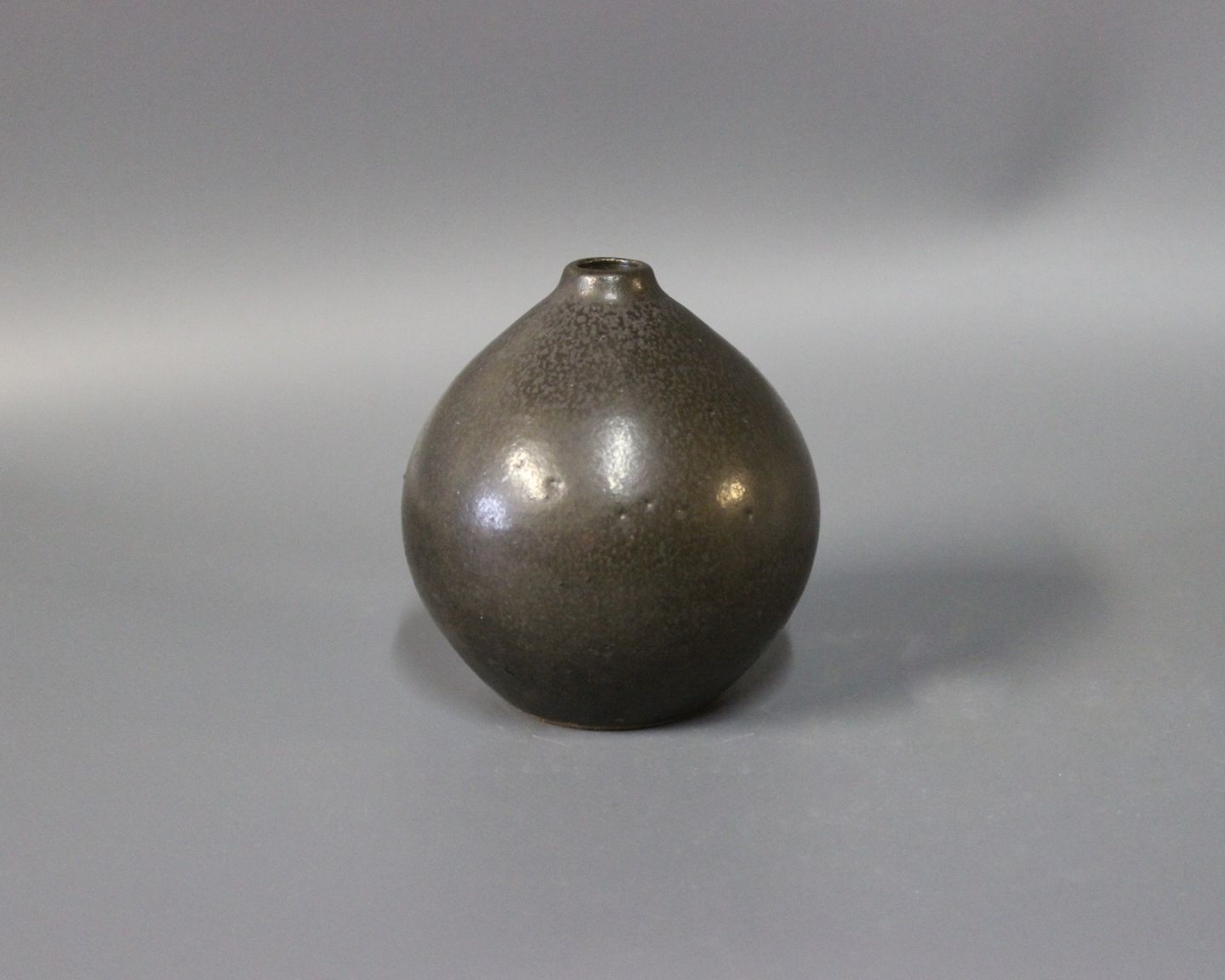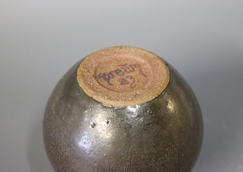 SolgtLille rund mørkebrun keramik vase stemplet Michael Breum.