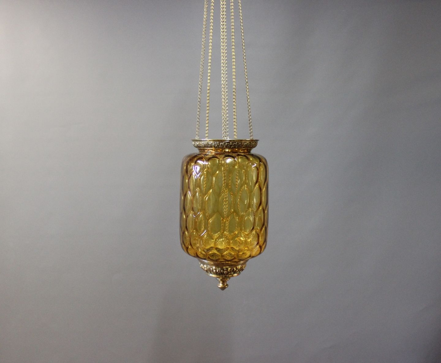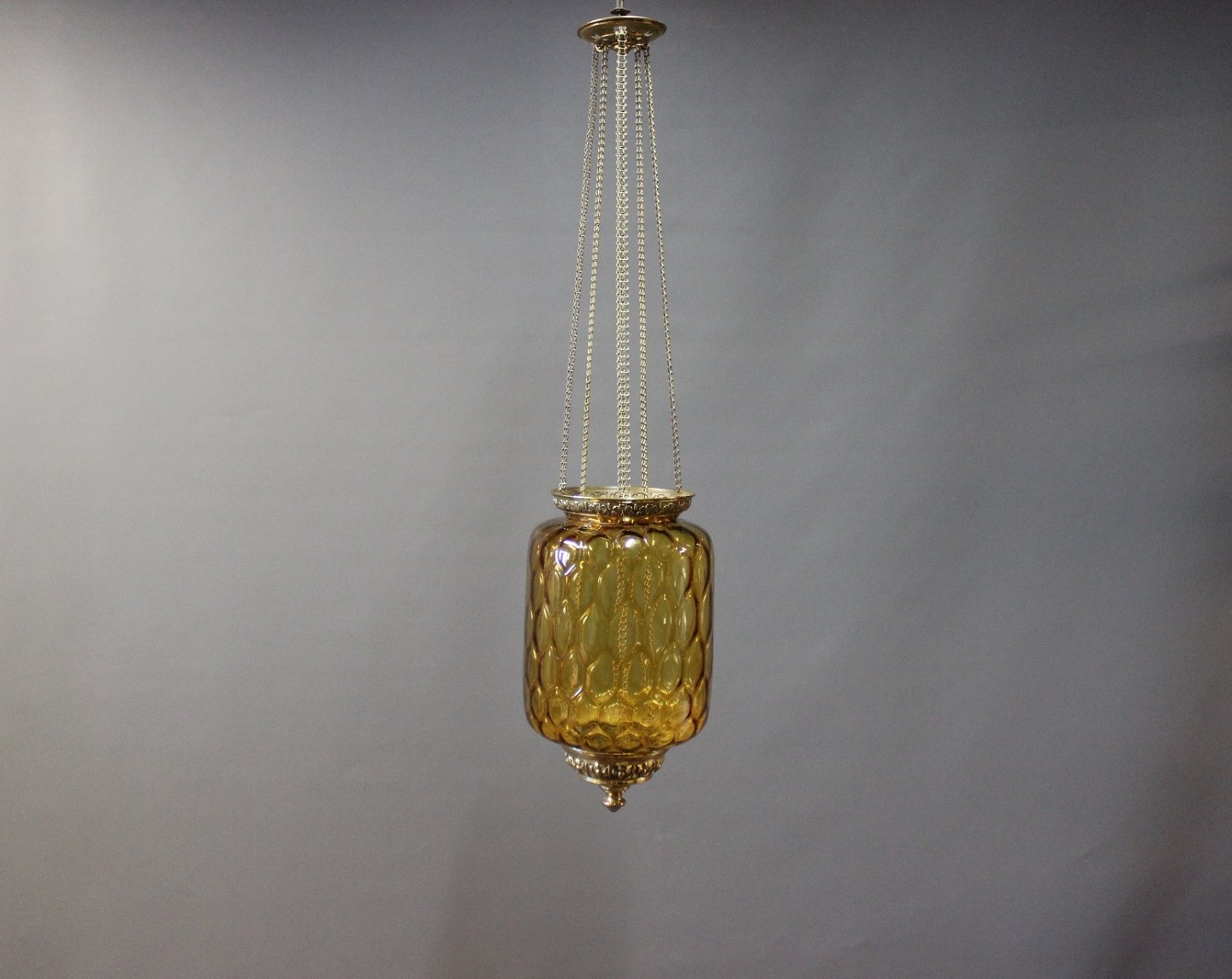 Pendant in yellow glass with brass mounting from the year 1860. The lamp has been refurbished.