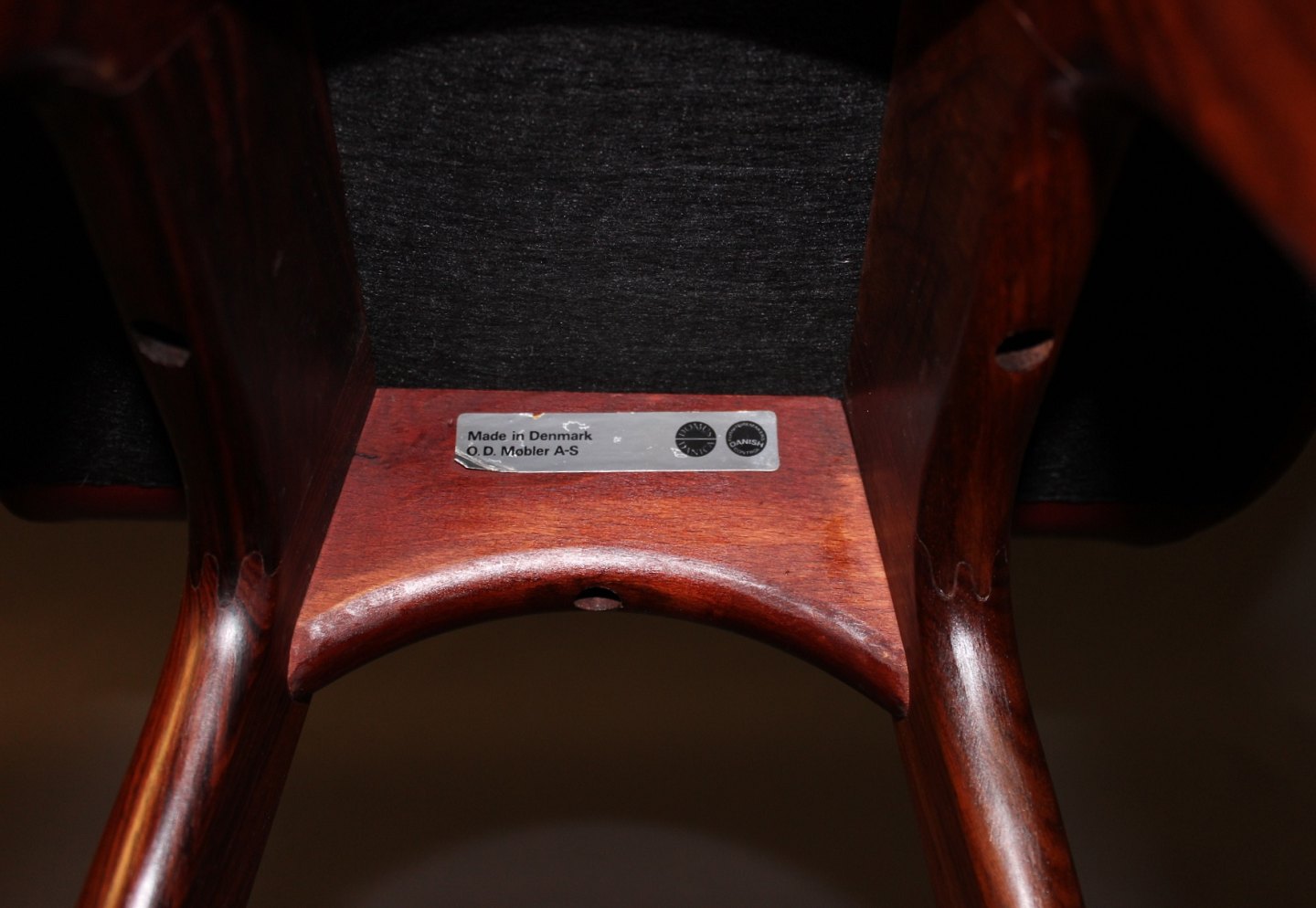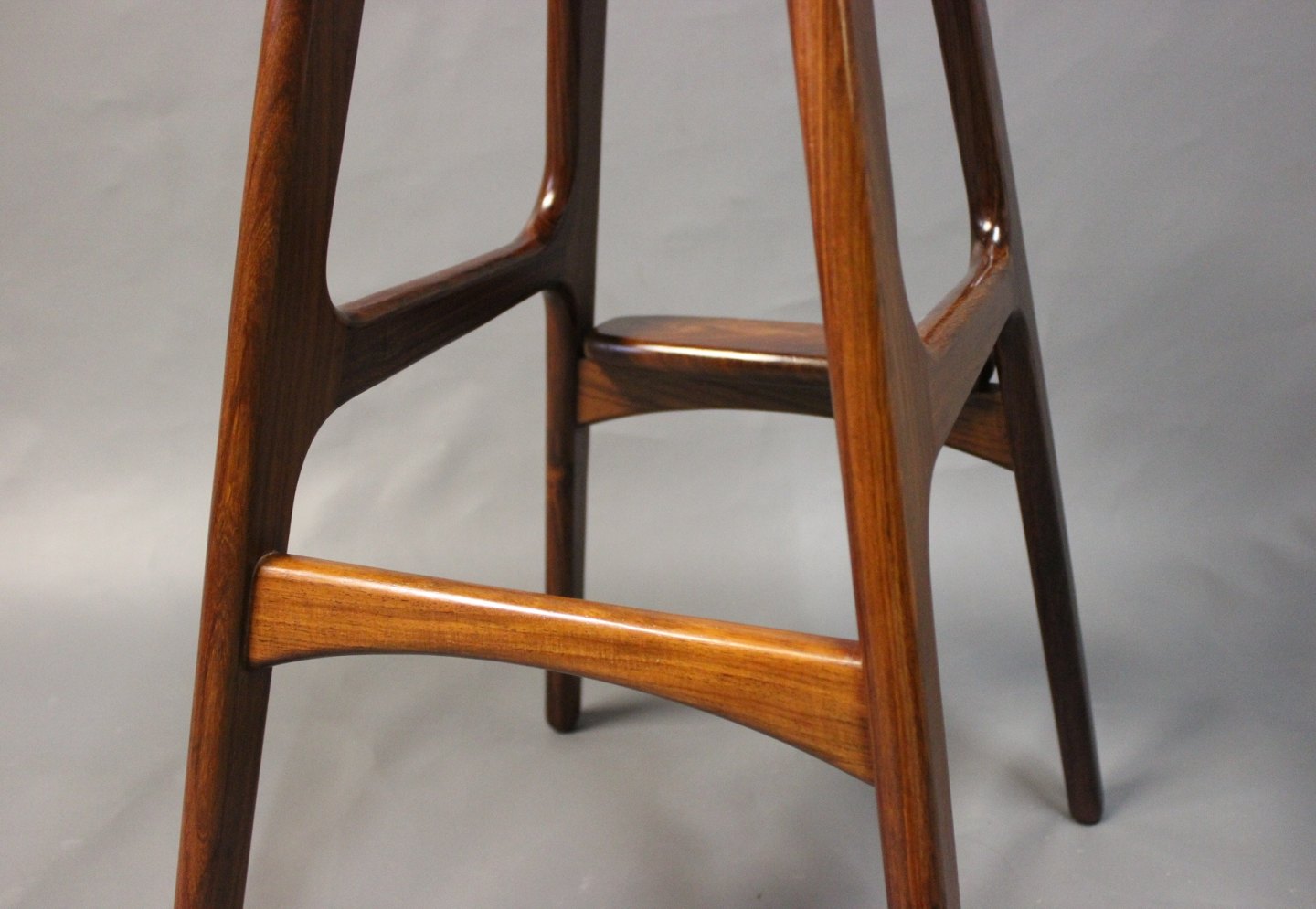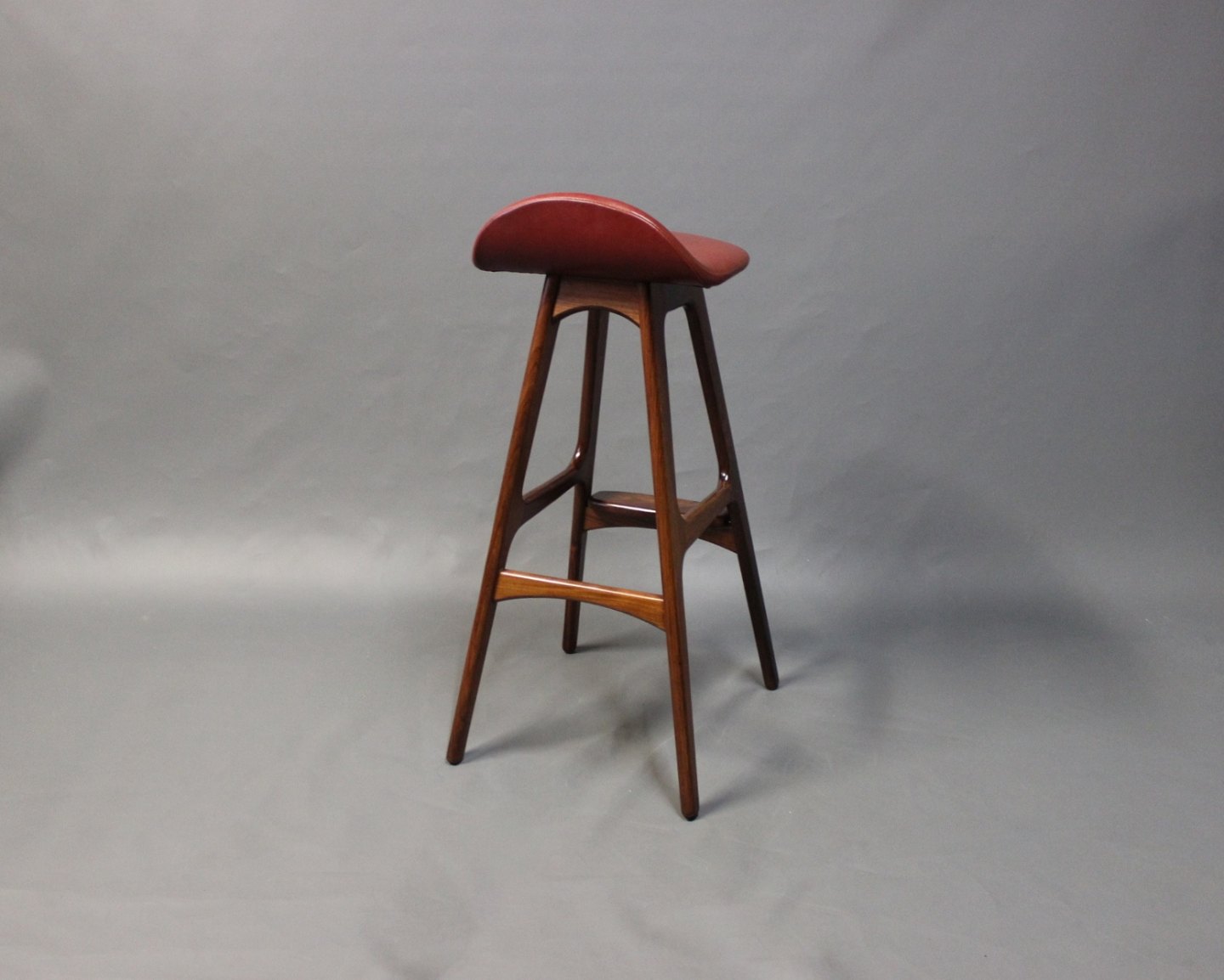 Bar stools, model OD61, designed by Erik Buch and manufactured by Odense furniture factory. The stools are of rosewood and newly upholstered seats of elegance leather.