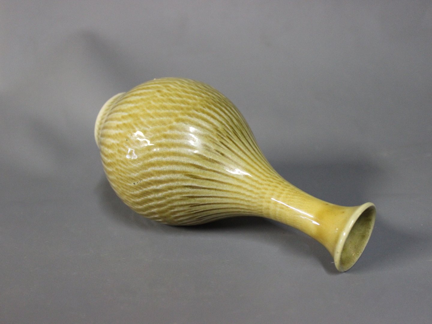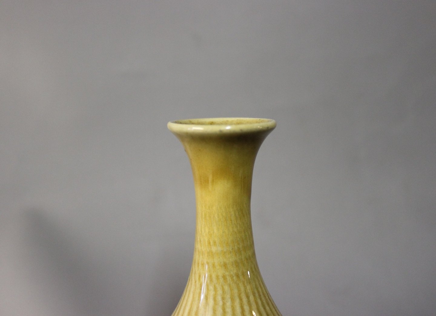 Vase med smukt mønster i grønlige farver af Boveskov Stentøj.