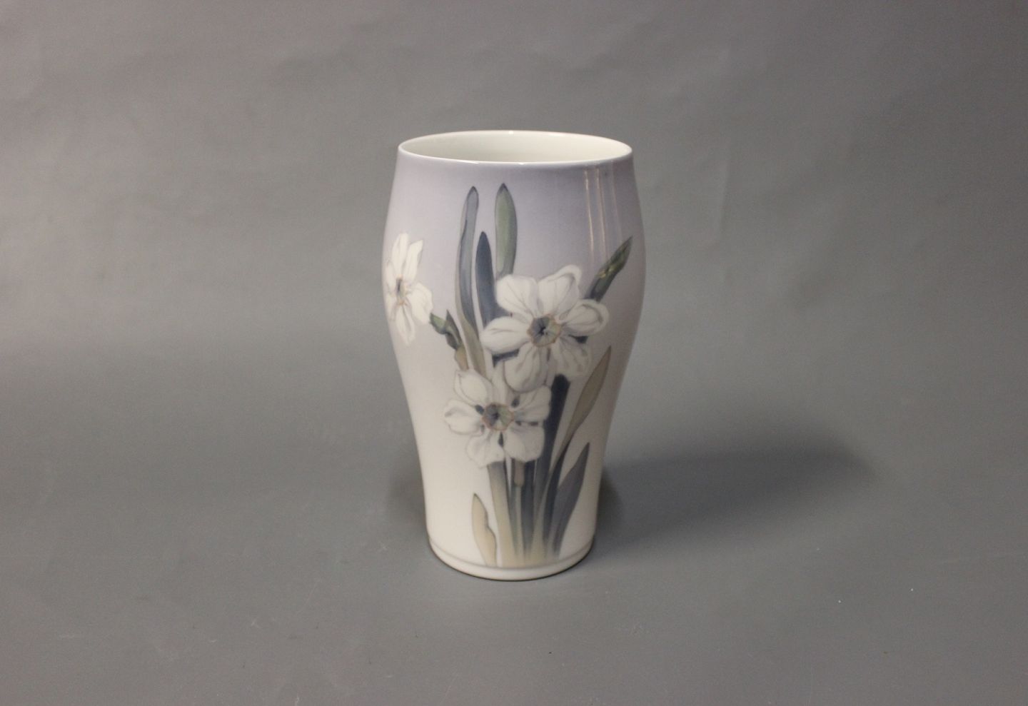SoldThis vase with a floral motif was manufactured by Royal Copenhagen with production number 2778. The vase is from 1957.