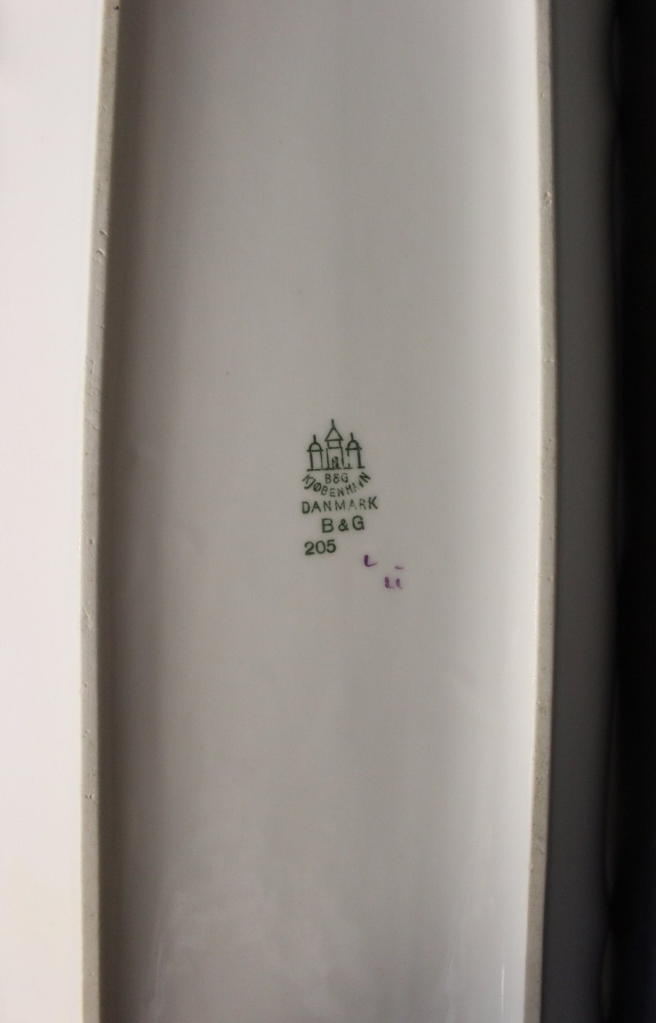 Aflangt porcelænsfad, nr.: 205, i Saksisk blomst af Bing og Grøndahl.